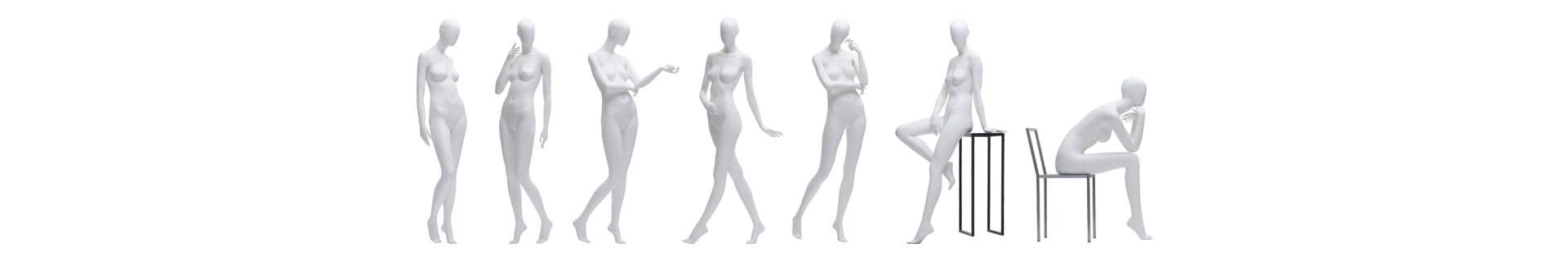 The collection 111 Mademoiselle is a range of poetic positions with removable faces which can be either abstract or realistic. The realistic faces uses WINDOW FRANCE’s CAMELEON patented removable eyes and lip system, giving you thousands of posibilities to personnalise your mannequins. The poses are very feminine, slender and elegant.