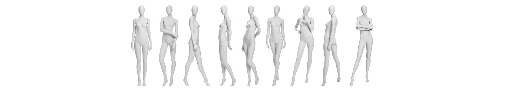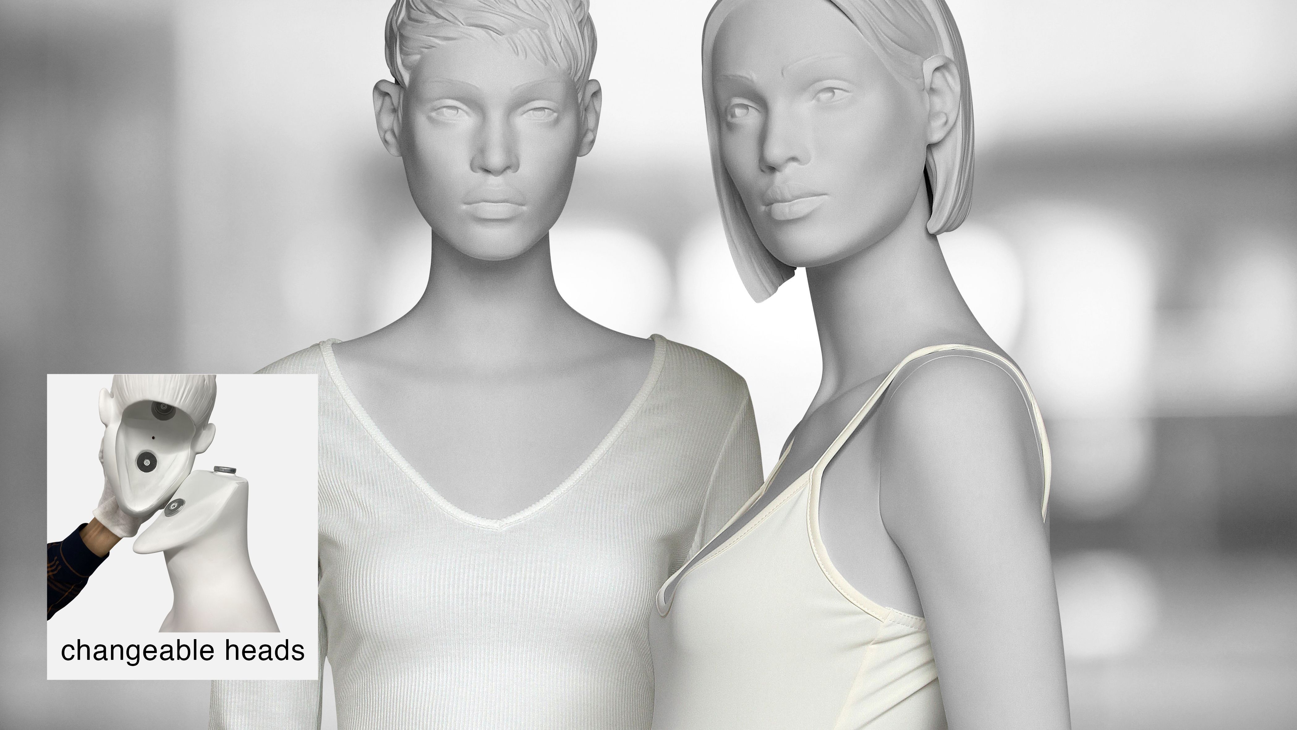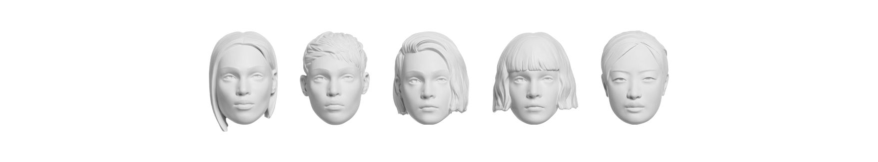 Citizens is made up of 19 female positions and 12 male positions and a wide range of heads with different faces and hair - styles. The collection has the advantage of having a new magnetic removable head system to be able to mix and match positions with the ethnic heads of your choice. A wide range of heads is available, and each head with different hairstyles.
