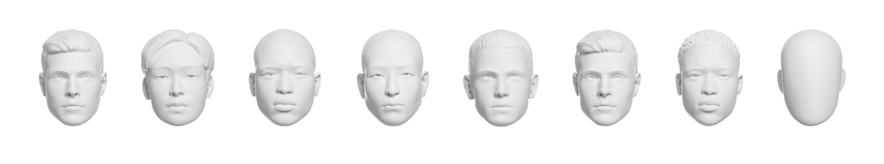 Citizens is made up of 19 female positions and 12 male positions and a wide range of heads with different faces and hair - styles. The collection has the advantage of having a new magnetic removable head system to be able to mix and match positions with the ethnic heads of your choice. A wide range of heads is available, and each head with different hairstyles.