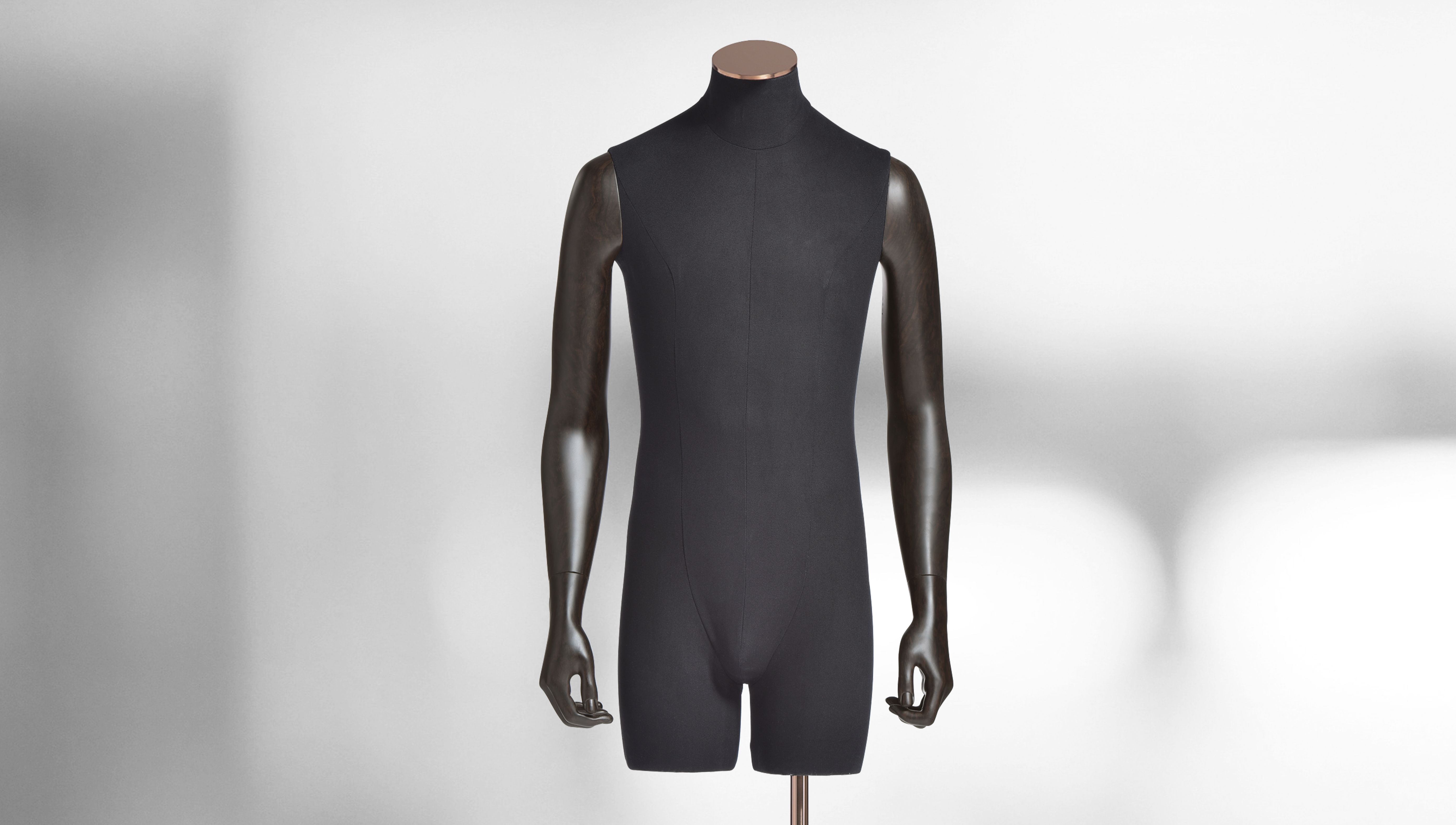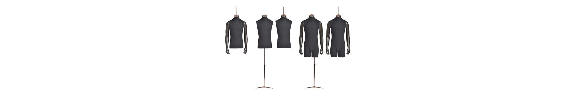 COLLECTION 49. TAILOR MADE BLACK VERSION - BUSTS The collection 49 VOGUE TAILOR MADE is a selected position from the collection Vogue with tailored busts in black canvas fabric and dark wood look arms and head. Neck plugs and stands come in a very stylish shiny copper colour finish.